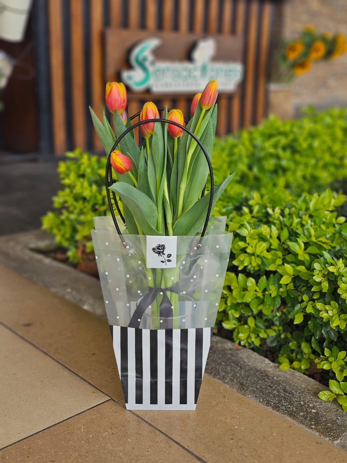 Una exquisita colección que fusiona la elegancia floral con la sofisticación. Estos vibrantes tulipanes, cuidadosamente seleccionados, ofrecen un toque de color y frescura que iluminará cualquier espacio.