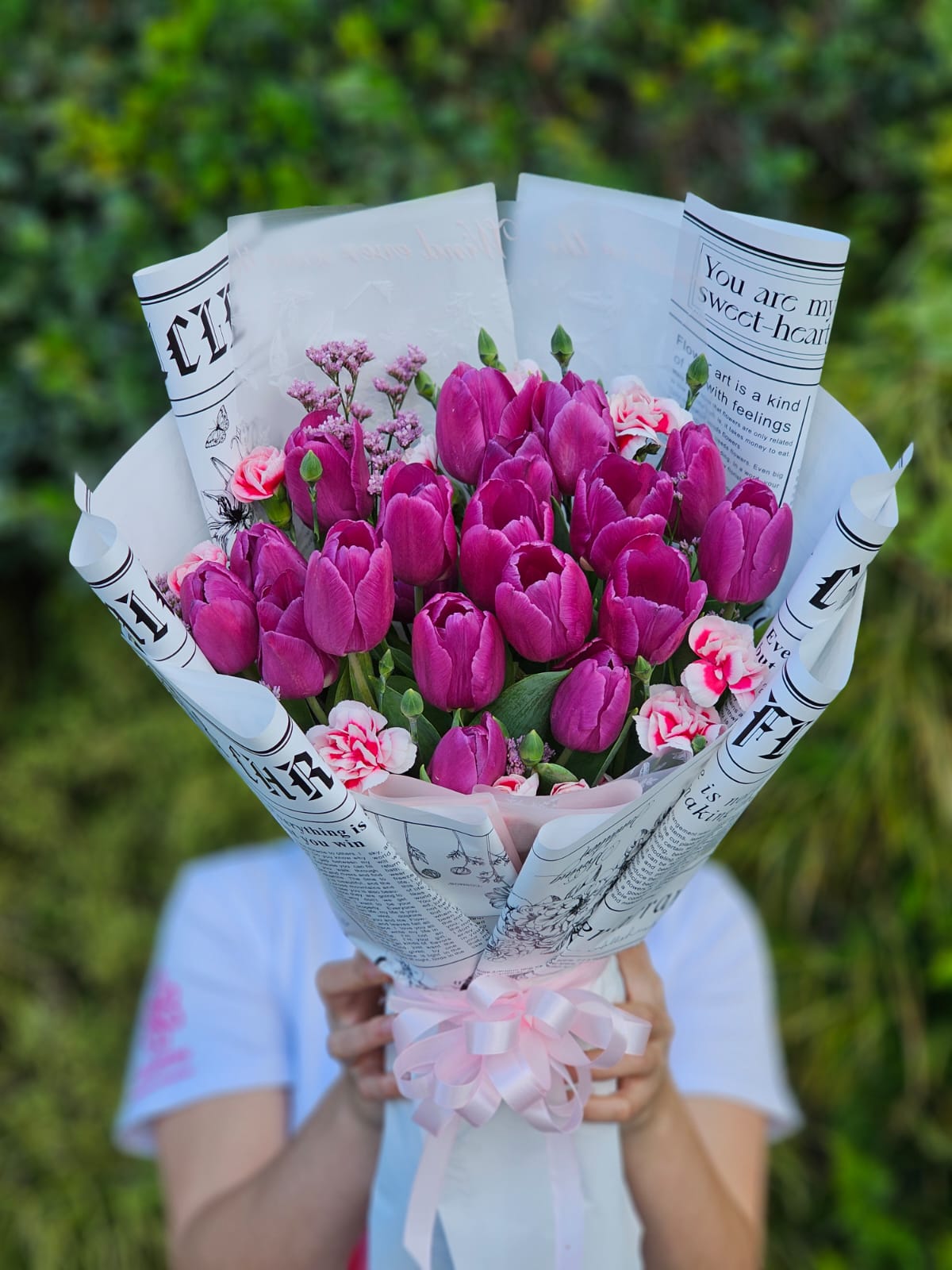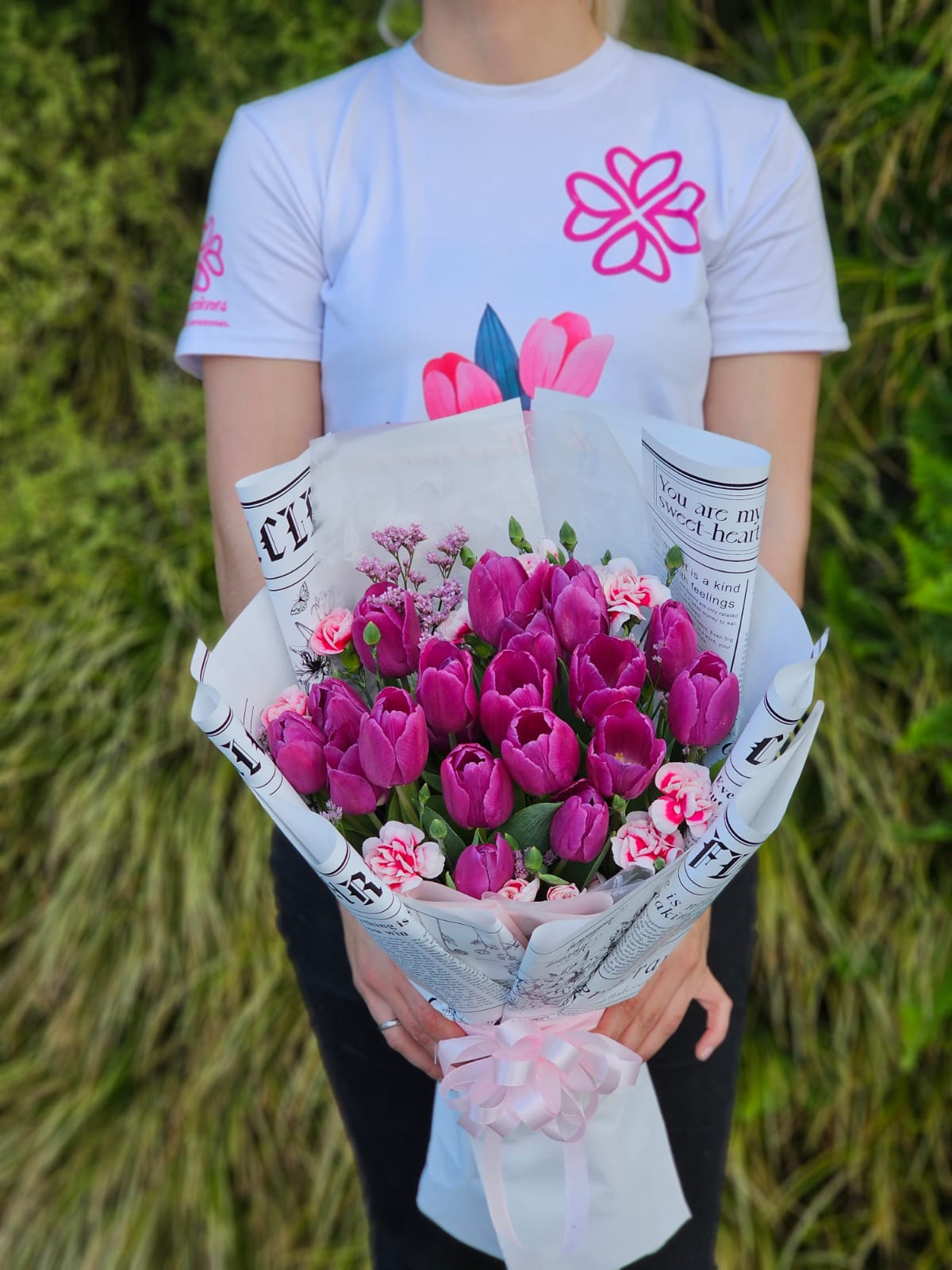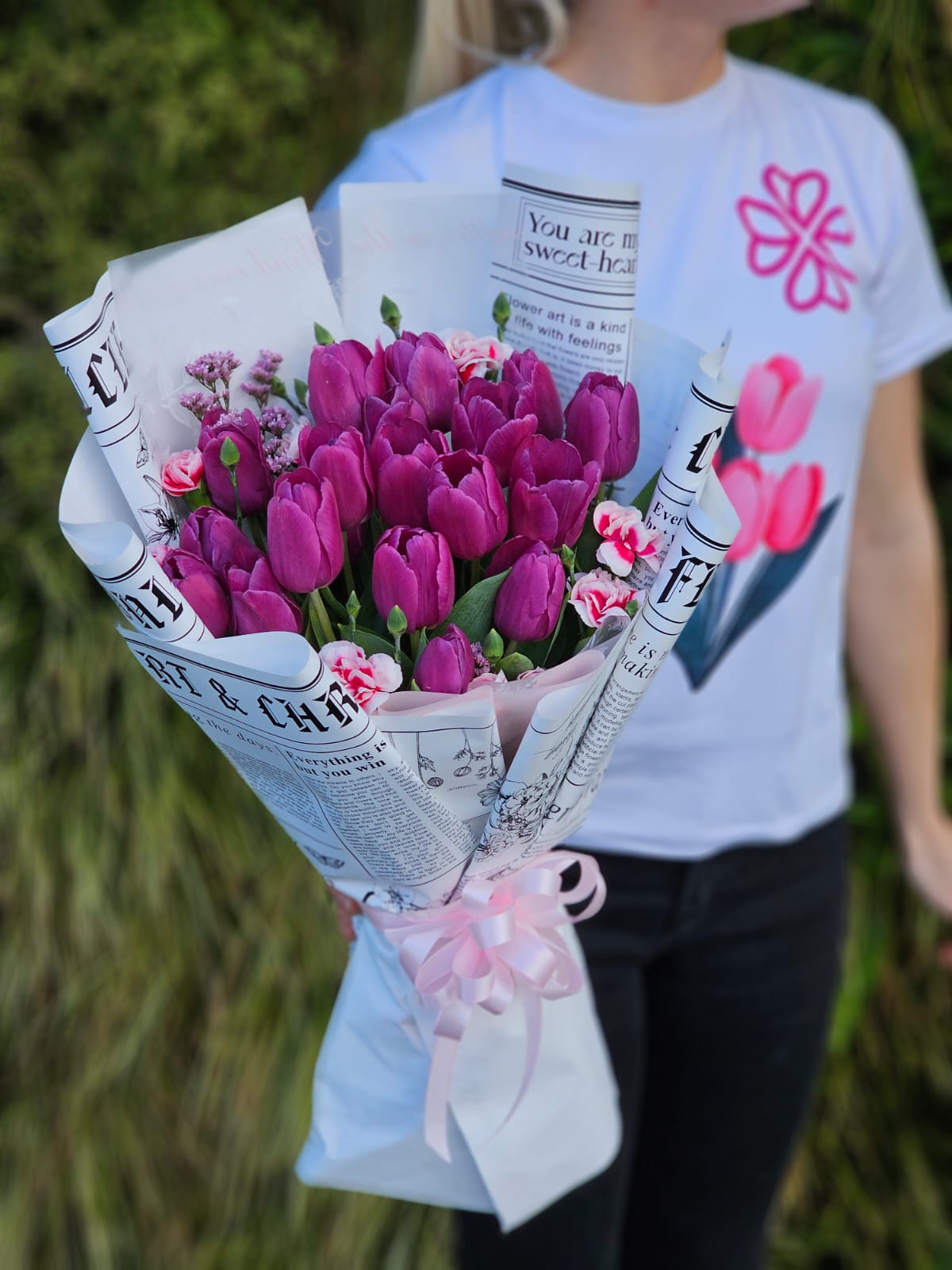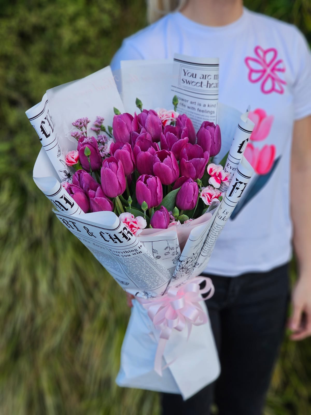Ramo de 20 tulipanes con mini clavel